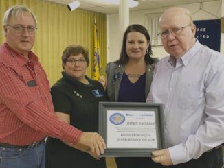 Jeffrey Vaughan (right), a member of the Rileyville Ruritan Club, was recognized as the 2019 Ruritan of the Year. The presentation was made by 2019 Rileyville Ruritan President Dennis Donak (left), District Govenor Becky Lane and National Director Cassandra Flanagan. Vaughan was honored for his “unselfish contribution of time and energy” with the Rileyville Ruritan Club.
