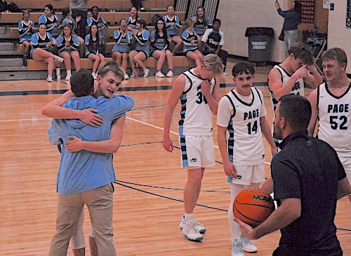 “That’s the all-time [single-game] scoring record here at Page, he broke 41 tonight previously set by my old teammate Tyler Williams [in 2016],” PCHS head coach Tyler Parker said after Tuesday’s dominating district win. “We didn’t think it was going to happen [tonight]… but we’re just thankful that it happened tonight. He’s an incredible player and an incredible person…been coaching him since fifth grade really, so seeing him grow into a mature adult is something special.”
