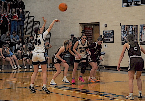 Both teams struggled in the third quarter — committing 10 turnovers in eight minutes between them, and knotting up in an 8-8 tie. Draft senior Hailey Cox hit her second and third three-pointers during the frame, while Page got triples from Purdham and senior Taryn Eppard.