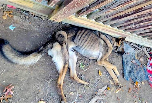 “You are convicted of a horrible act,” Judge Ritchie told Maiden as he explained the thoughts that went into his deliberation. He noted the Shenandoah woman’s difficult situation — being a single mother who was nine months pregnant with two other small children at home when law enforcement forced her seek medical attention for the depleted dog. The judge acknowledged that she showed compassion for others through testimony of how she cared for her 88-year-old grandparents, as well as her brother, who recently had a liver transplant — and was the person who captured the image (below) of a depleted Rosie that got the public’s attention.