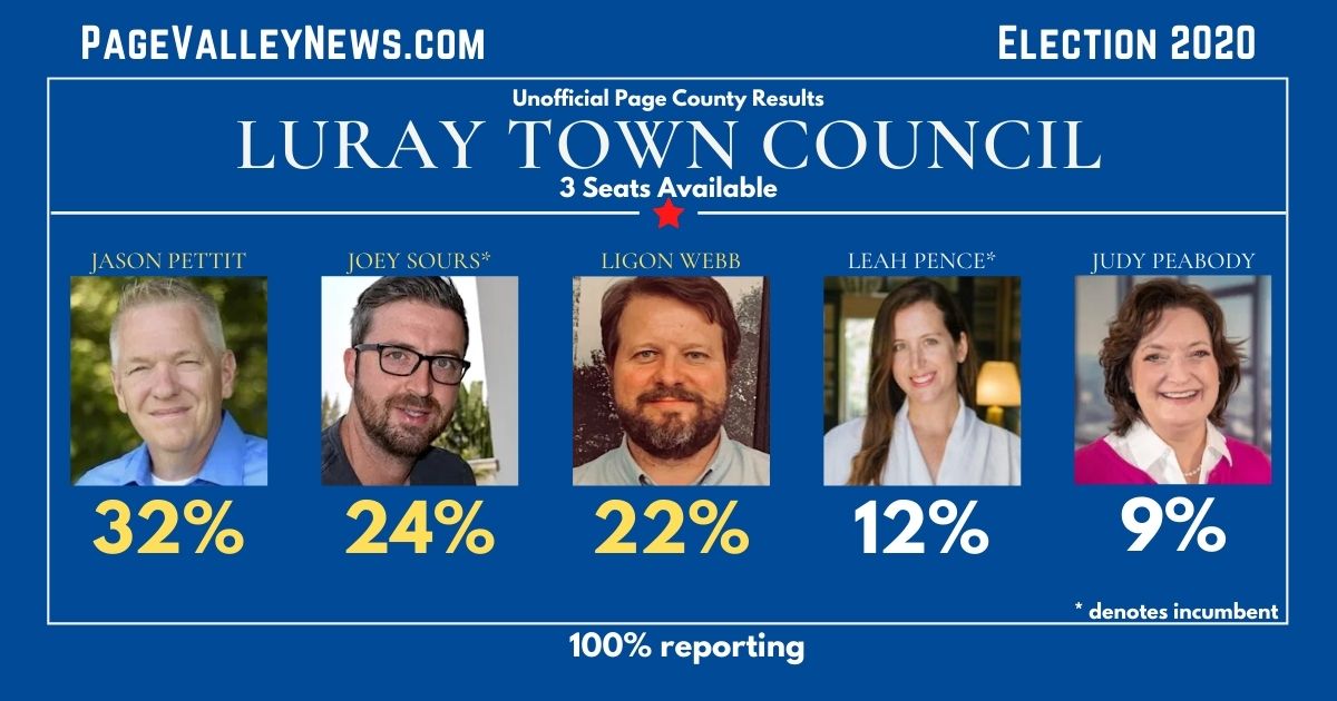 As of Tuesday night, Pettit had received the most votes at this point in the Luray Council race, with 791.