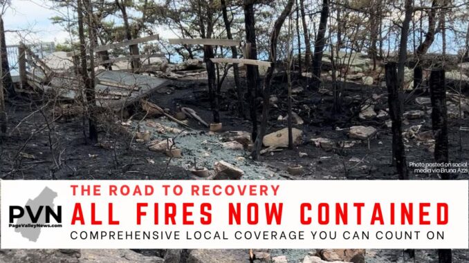 On Wednesday morning, the Virginia Department of Forestry stated that the 211 West, Shenandoah Forest and Serenity Ridge fires they were managing in Page County had “excellent progress made [Tuesday], reaching containment…” Although Thursday morning’s report did not read “100% contained.” The only fire considered not contained is the Capon fire in Rockingham County, which now has burned 2,486 acres.