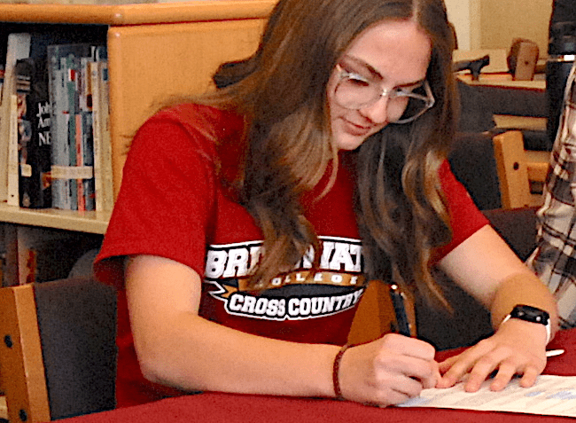 A few dozen family, friends, teammates, coaches and other supporters gathered in the LHS library March 27 to watch Wood sign her intent to run for the Eagles of Bridgewater College.